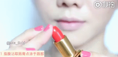 STEP ONE:覺得咬唇妝太麻煩的寶寶可以試試薄塗,用指腹蘸取一點唇膏,輕輕塗抹在嘴唇上。