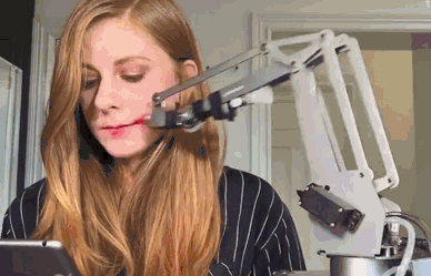 STEP THREE:使用指腹將唇釉向上下兩個方向分別暈開,得到自然的唇妝效果。